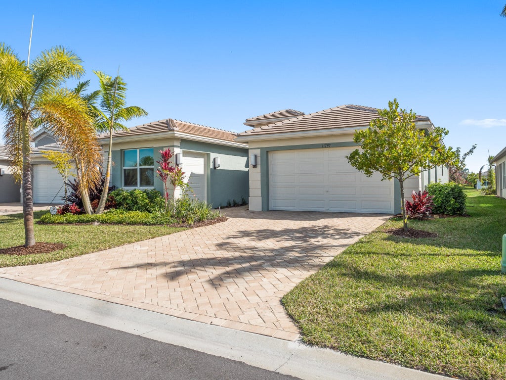 Welcome to your dream home in Valencia Grove Riverland. An exceptional blend of luxury, comfort, and modern living. Just hit the market! This stunning Bimini model offers four spacious bedrooms, three beautifully appointed bathrooms on a premium lake-front lot. Open-concept design creates an inviting atmosphere with abundant natural light. All the benefits of Natural Gas to reduce utility bills, impact rated windows and sliders, energy efficiency, home security. A chef's delight, the kitchen features state-of-the-art appliances, a large island, counter seating, exceptional cabinetry. Designed for Florida living at its finest. Water view, screened lanai, extended patio. Perfect for enjoying a morning coffee or hosting a summer barbecue. Two-car plus golf cart garage.