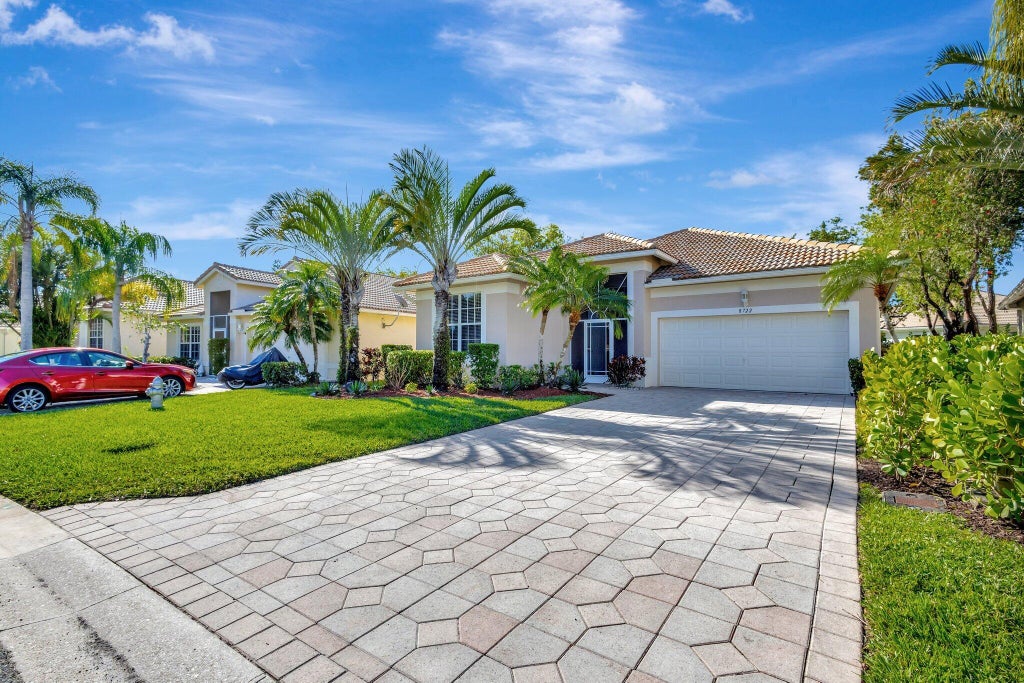 Pristine 2/2/2 + Den (BR 3) in ultra convenient and welcoming Andros Isle. Lovingly maintained by original owner. Screened Front Entrance Enclosure. Spacious K with Peacock Green Marble counters, newer appliances, natural pecan cabinets with pull out shelves in all kitchen cabinets, spacious informal dining area/breakfast nook. Formal DR. Crown moulding, tray ceilings, wainscoting. Premium window treatments and light fixtures. Split bedrooms (carpeted). 2 Walk in Closets in MBR. Roman Tub in updated MBTH. Comfortable screen enclosed back patio with adjoining BBQ area. Wash Tub. Low monthly HOA includes 24/7 staffed gate security, landscaping, irrigation not on meter, monitored in house security, WiFi, CaTV, A/C 2022, water heater 2024. Private access road to Publix shopping plaza. Award Winning Resort clubhouse w huge hted pool, large well equipped fitnrss center. Access road to Publix Plaza. Easy access to Turnpike, Airport, Downtown WPB, Wellington, restaurants and theatres. Low tax basis