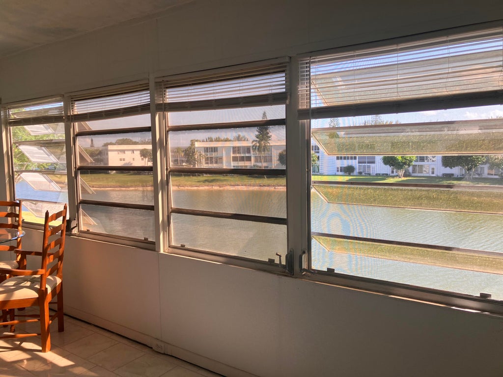 Great 2BR/2bath unit on the water, that needs some TLC and ready for a remodel. Don't miss this opportunity in a building with a great walkable location to both gates inside of Century Village. Wellington area has two association pools, and is on the water having awesome water views. This is the place to make into a perfect snowbird, or retirement downsize retreat. Central A/C, new ceiling fans, non-rentable building.
