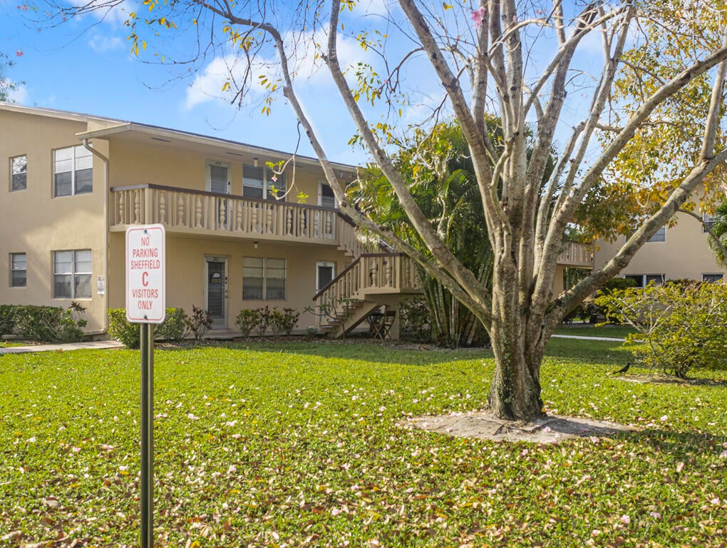 Fully Renovated 1BD/1.5BA Corner Condo in Century Village - Resort-Style 55+ Living!Step into comfort and style with this beautifully updated 2nd floor corner unit featuring 1 bedroom, 1.5 bathrooms, and an enclosed patio with east/west exposures for all-day natural light. The spacious bedroom easily accommodates a king-size bed and includes his and hers'' closets. Flooring includes laminate in the living room and kitchen, tile in the bathrooms, and soft carpet in the bedroom.Completely open, modern kitchen with brand-new cabinets, ceramic tile flooring, and an abundance of counter space. All stainless steel appliances including refrigerator, electric range, vent hood, and dishwasher. Water heater and central A/C are approximately 7 years old. Please note: No Rentals Allowed