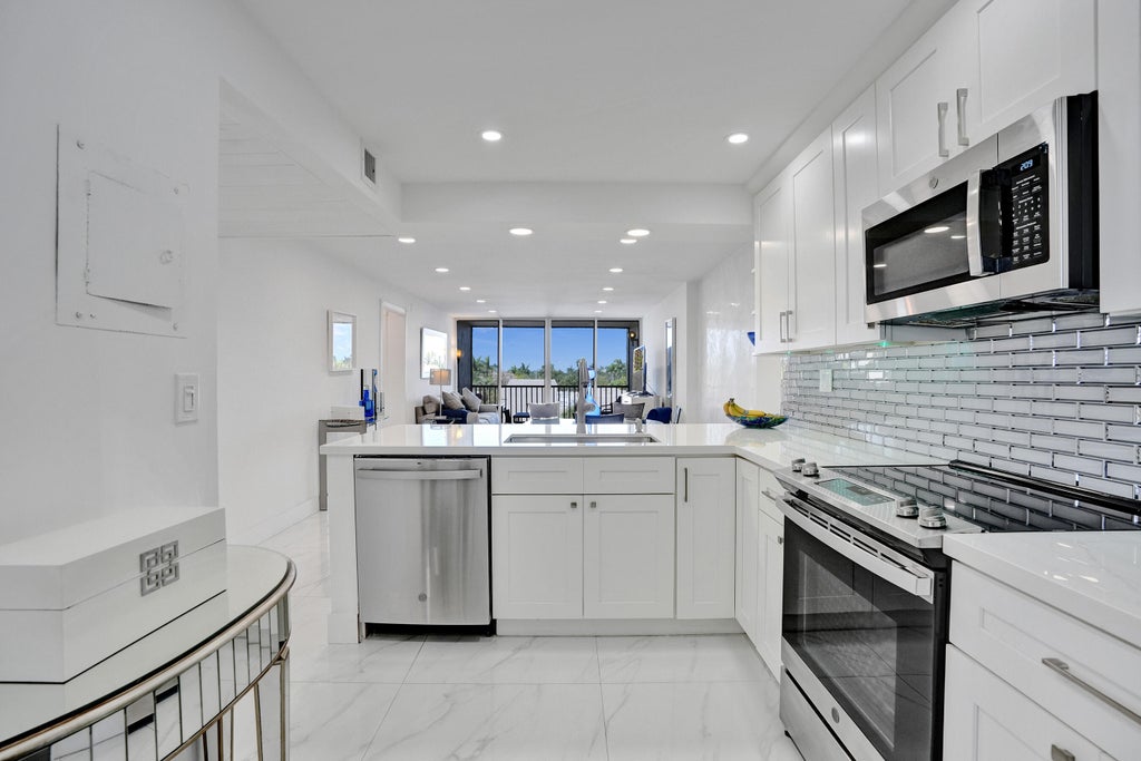 Tastefully fully renovated 2/2 condo in east Boca Raton! Top of the line upgrades include beautiful quartz counter tops, custom wood cabinets, under cabinet lights, stainless steel appliances, updated bathrooms & stunning new tile flooring through-out. This bright and light open floor plan unit has canal views from the living room and master bedroom. The unit also has impact windows in the kitchen and the bedrooms. Boca Bayou is a Boating Community located east of Boca Raton minutes from the beach, I95, Mizner Park, shops, restaurants and downtown Boca Raton. The community offers 24-hour manned security, 5 swimming pools, community laundry, shuffleboard, tennis courts and a club house. Condo fee covers building insurance, water, hot water, cable, 24-hour manned gated security, and fulland full reserves! No pet community but service animals are allowed. Community completed 30-year concrete recertification and SIRS with all assessments paid. Clubhouse renovation in progress.