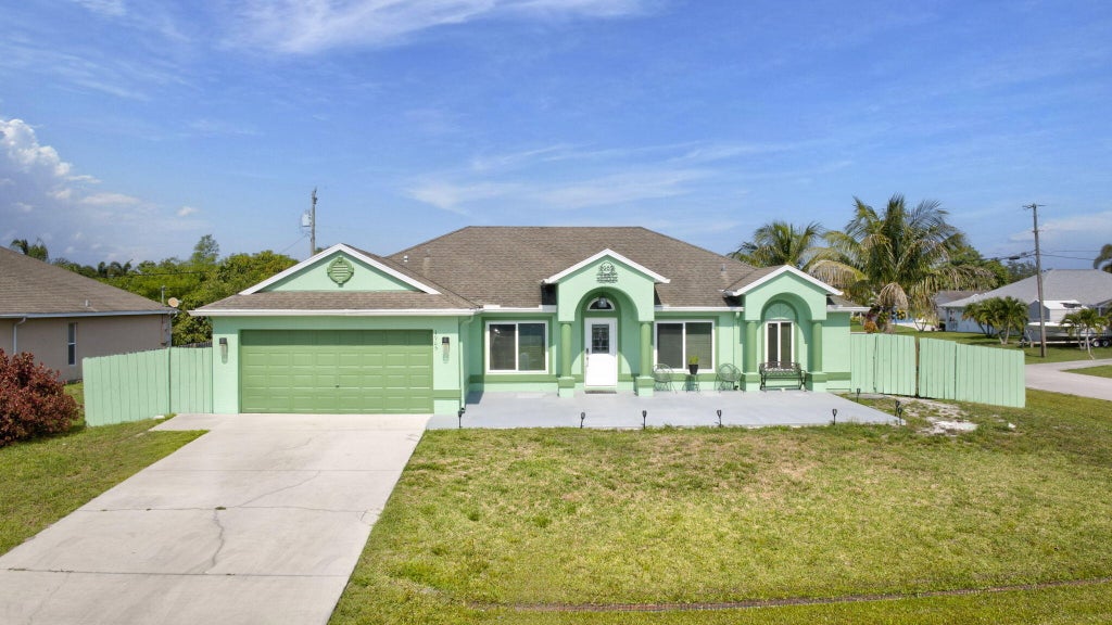 Spacious 4-bedroom, 2-bath, 2-car garage home on a large fenced-in corner lot in Port St. Lucie. Features include impact windows, elegant living and dining rooms, spacious family room, and a screened back patio. The main bedroom offers vinyl plank flooring, extra closet storage, and has en-suite bathroom with dual sinks, separate shower, and walk-in closet. Additional upgrades include a newer A/C, water heater, W/D, well cared for roof. The garden has mango, orange and coconut trees, a papaya plant as well as oregano herb garden! There is a a tool shed attached to the side of the building in the year as well. Easy access to Turnpike and I-95, minutes from the NY Mets Stadium, and centrally located between Orlando and Fort Lauderdale.