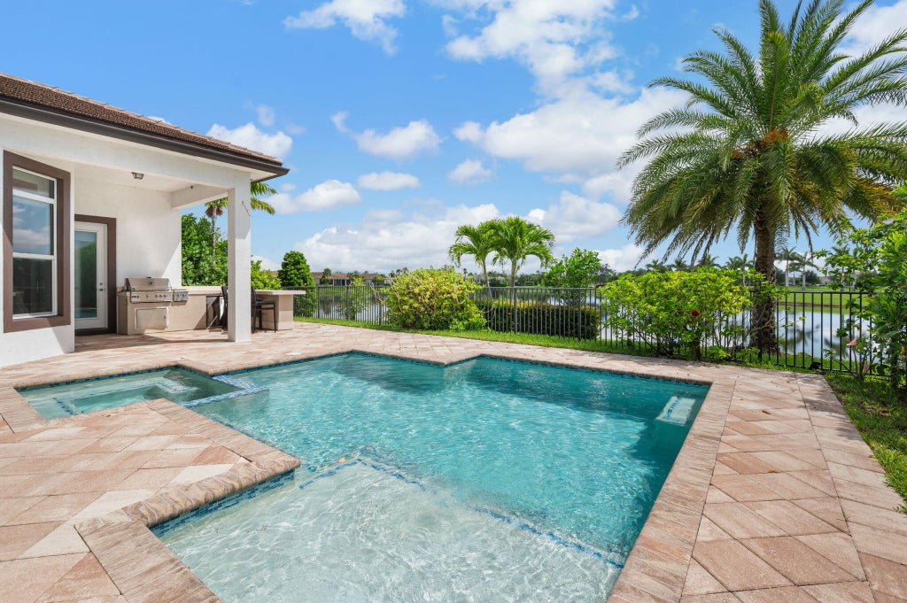 Don't wait to build, move in NOW and save time and money. 2020 Collina model Kolter home in PGA Verano. Entertaining living room, kitchen & dining, private office & Bedrooms are ensuite. Owner suite: walk in closet, dual sinks, soaking tub & shower. Prof. kitchen w/ center island, wall ovens and pantry. R/O system and water filtration system included. Laundry room w/ cabinets and sink. Outdoor kitchen with grill, fridge and seating area. Zen style waterfall with water views. Spa and heated saltwater pool with cabana bath including full walk in shower. Additional features include an HVAC system with an ionizer to remove airborne particles, an Ozone Eco Laundry Washer System for soap-free, eco-friendly cleaning, hurricane rated screen on patio, remote controlled window treatments.Easy, low maintenance home in gated community with all the services at your fingertips including an EV charging station in garage. Resort style living at Talavera Clubhouse includes: 27 pickleball courts, indoor lap pool, outdoor pool & cabana, Tennis, bocci ball & basketball courts and fitness center. Quick cart ride to PGA & Astor Creek Golf Course.