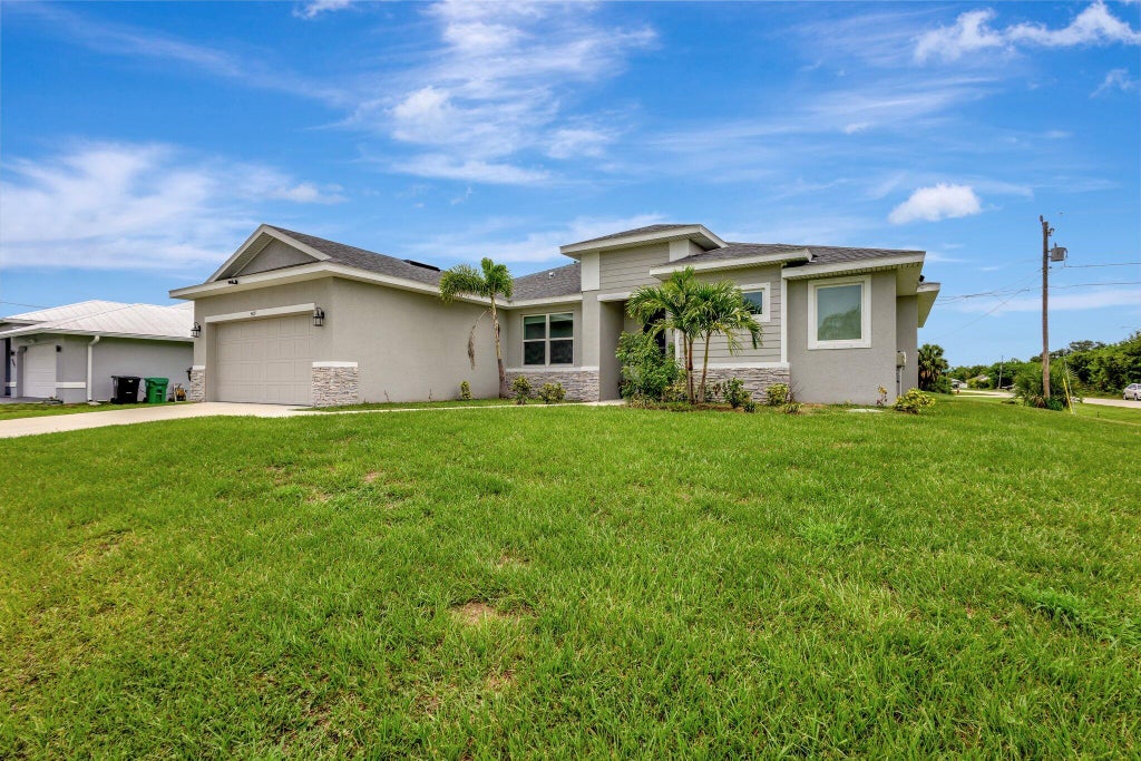 corner lot south of Becker rd and is loaded with upgrades. This home features stacked stone exterior, plank tile throughout the home, 8 foot custom doors, 42 inch white shaker cabinets with soft close doors and drawers, quartz, waterfall island with farm sink, white subway tile backsplash in the kitchen, frameless glass shower enclosure to a huge spa like master shower with glass listellos and tile to the ceilings, huge walk in closets, a den/office, stainless steel appliances including the fridge.