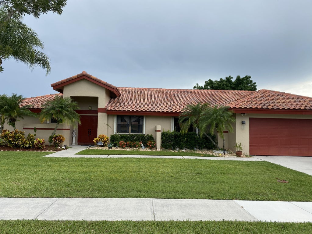 Available NOW until 10/20/2025. FURNISHED TURN-KEY spacious 3/2 home with the lovely view on the perfectly maintained private pool. Enjoy relaxing under covered patio with 2 new fans in the privacy of the fully fenced patio. House features vaulted ceilings, formal living room, dining room, family room, new white wood looking flooring throughout. The large Master Bedroom with the sitting area is set apart from the other 2 bedrooms. Walking distance to Wellington's fabulous shopping and restaurants, just minutes to WEF, Polo Club, Wellington Green Mall, 15 min to airport. No HOA Bring the Trucks!