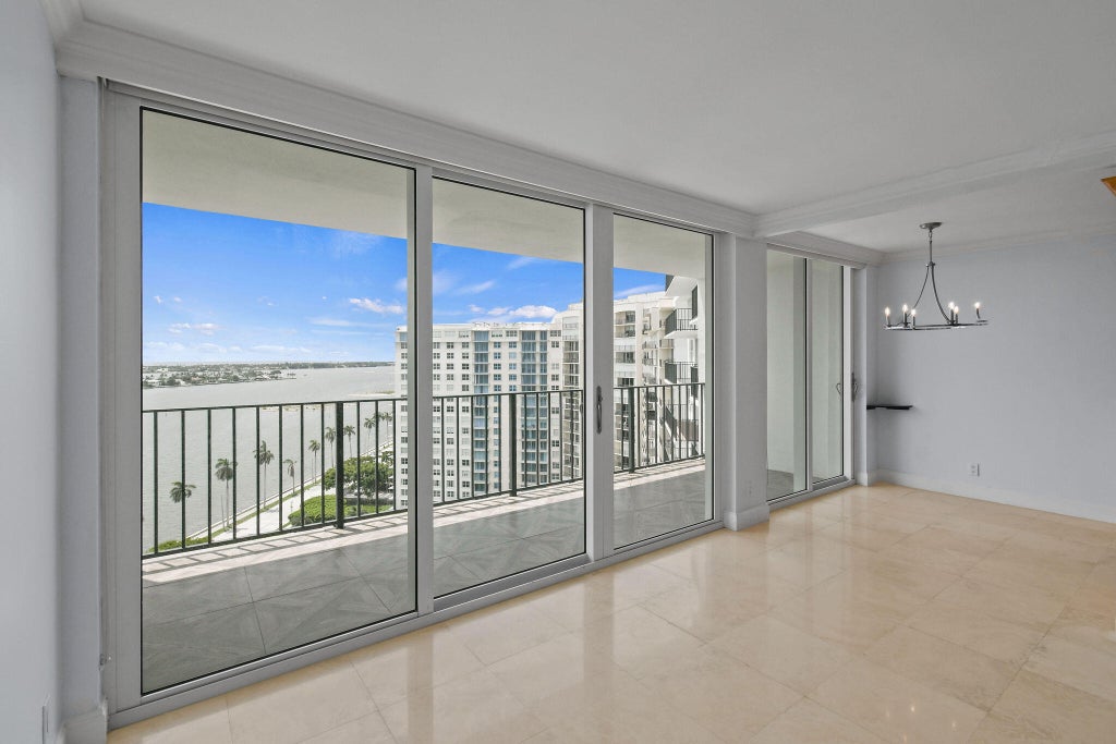 Enjoy stunning views of the Atlantic Ocean and Intracoastal Waterway from this well-maintained 17th-floor residence at the Rapallo. This unit offers a spacious private balcony ideal for relaxing or entertaining. Interior features include full impact glass throughout, a Murphy bed in the dining area, two TV wall mounts, a wall-mounted TV in the living room, and a credenza. Ideally located just minutes from the beaches, downtown West Palm Beach, and Palm Beach Island.