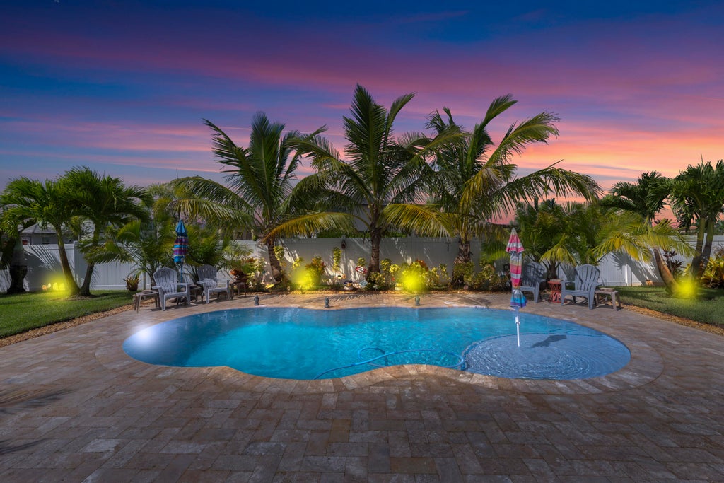 Home offers an assumable VA loan at 4.25%. Welcome to your very own tropical paradise! This 3 bed/3 bath plus den POOL home on a fully fenced, almost half-acre corner lot in the Copper Creek Community. Enjoy the open floor plan with tile throughout, upgraded kitchen and bathroom cabinets, quartz countertops and upgraded fans and lighting fixtures throughout. Plantation shutters on every window and slider door. The kitchen features high end two year old s/s appliances and a large island for meals and entertaining. Step outside to your refreshing salt water pool with travertine deck, shed and a hurricane-rated gazebo perfect for entertaining.Easy to maintain lush landscaping, oversized driveway for extra parking, Reverse Osmosis whole house water system, gutters and a well for irrigation.