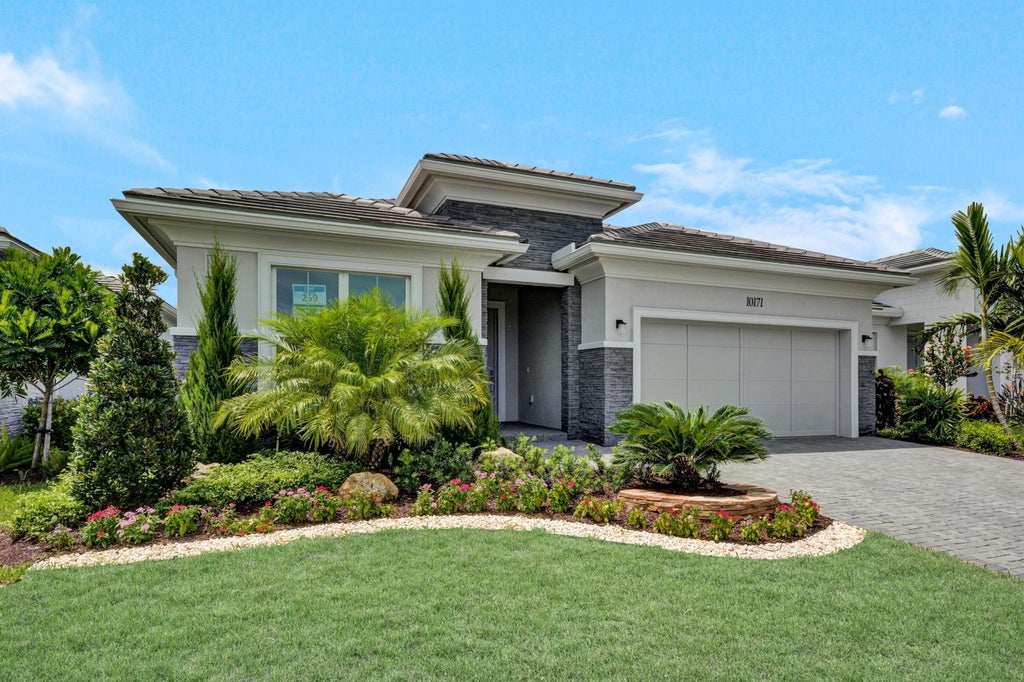 Step into the elegance of the Maya Contemporary a beautifully designed home that offers modern sophistication and everyday comfort. You'll be captivated by the lush, professionally landscaped yard, creating a serene and private outdoor setting complete with a sparkling pool and spacious covered lanai. Inside, the open-concept floor plan is enhanced by sleek porcelain tile flooring throughout, giving the home a seamless, elevated look. The designer kitchen features two-tone cabinetry, upgraded stainless steel appliances, a striking backsplash. The primary suite is a true retreat, showcasing a spacious layout, walk in closet, luxurious finishes, and a spa-inspired bathroom with dual vanities and an oversized walk-in shower.