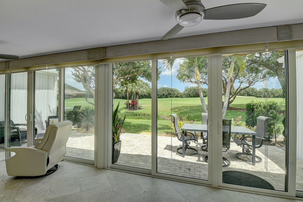Beautiful rental with NO Membership! Landscaped patio overlooks picture-postcard private view with no cart path nearby. Recently renovated 2/2 villa with attached Full 2-car garage, white gloss kitchen, vaulted ceiling, skylights, high-hat lighting, modern fans. Master bedroom has huge storage with wall of built-in drawers and closets. Watch golfers swing and birds and otters flourish on beautifully landscaped grounds of Boca West. Nite Landscaping on back patio. Enjoy covered electronic awning. Second bedroom/office. 4 TVs and cable and internet included. Peppertree 1 is wonderfully maintained and offers renters a large, heated pool and hot tub. Water Filtration full-house. Like new Washer/Dryer. BBQ allowed. Queen-size bed with adjustable base/Sleep Number mattressin second bedroom, or can be moved to Main Bedroom and other room used as a den or office. Lovely Peppertree I Section pool and hottub in walking distance. Samsung appliances; Whole House RainSoft Water Filtration System. Like new AC. Complete Impact Glass.