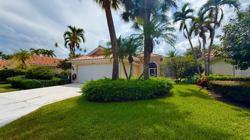 If it's an Oakmont model you are looking for then look no further! With 12ft ceilings in the Great Room and 10ft ceilings elsewhere this home flows beautifully and is the perfect floor plan for entertaining. The principal bedroom boasts a double bathroom arrangement with Roman tub and walk in shower, a large walk in closet plus an additional wall of closet space. The two guest bedrooms are located on the opposite side of the home allowing privacy for all.Gorgeous neutral luxury vinyl flooring throughout the entire home! Updated kitchen with granite counters - most appliances have recently been replaced - reverse osmosis water system 2025 - both bathrooms have been updated to include walk in showers, comfort level commodes and granite counters.The laundry room has been renovated with extra storage and granite countertops. New hot water heater, central vacuum system, state of the art security system. The beautiful open patio with lush landscaping overlooking the lake, or the screened covered lanai, is the perfect spot for enjoying a peaceful morning coffee or winding down with a refreshing beverage in the privacy of your own oasis!! The heart of this unique residential community is its waterfront Town Center where you can grab lunch or dinner at the on-site "Centanni" Italian restaurant; enjoy the tennis and pickle ball experience on the eight Har-tru lighted courts with on-site tennis instructor and active tennis program. Take a swim in one of the three heated pools, fish from one of the many picturesque bridges; stop by the library, play ping pong or pool. Also located in the Town Center is the full service Illustrated Properties real estate office, beauty salon, mail facility and children's playground. Enjoy 12 miles of scenic pedestrian pathways, take a bike ride or enjoy a vigorous work out in the renovated fitness center or play bocce - all for the exclusive use of River Walk residents! Yoga, mahjong, bridge, aqua aerobics, foreign language classes, crafts and more are some of the other fun activities offered! River Walk offers luxury resort-style living, without extravagant ''country club'' fees! Conveniently located near the turnpike, Palm Beach International Airport, the Outlet Malls, Kravis Center, Downtown, and Palm Beach Island.