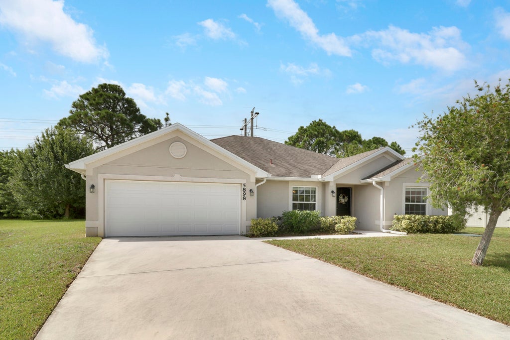 Welcome to Torino! This 4-bedroom, 2-bathroom home is located in a quiet cul-de-sac, offering a peaceful and convenient setting. The floor plan by Adams Homes is a single-story home that combines timeless design with modern functionality. This thoughtfully laid-out home offers an open-concept space, seamlessly connecting the kitchen, dining area, and living room to create a warm, inviting environment perfect for both everyday living and entertaining. The kitchen is has plenty of counter space, and a breakfast bar that's perfect for casual meals or socializing. Vaulted ceilings in both the kitchen and living room enhance the sense of space. A formal dining room provides a setting for dinner parties and family meals. The master suite is a private retreat, featuring a spacious bedroom,Pleasedouble vanities, a soaking tub, and walk-in closet. Three additional bedrooms are located on the opposite side of the home, offering privacy for family members, guests, or the flexibility to create a home office or hobby space. Other highlights include a two-car garage with additional storage space and hurricane shutters, a private backyard with pavers, an ideal space for a fire pit and relaxation. The home is has a well-designed layout that maximizes both comfort and privacy. The home features a floor plan that offers the perfect balance of style, function, and space for families of all sizes. Please note that some photos have been virtually stage.