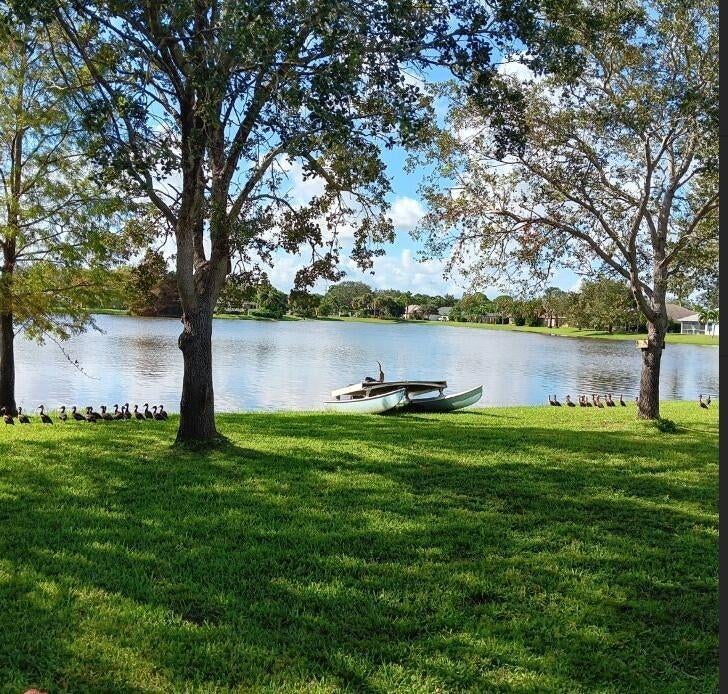 Welcome to the oak tree lined streets of Hammock Cove at Sawgrass Lakes. This lakefront gated community of 126 homes features a club house, fitness room and lakefront pool. The home is located between Becker Road and Gatlin Blvd. between I-95 and the Turnpike. The $272 monthly HOA fees are very reasonable include lawn maintenance, internet and cable. The shingle roof was replaced in 2021 and the air conditioner was replaced in 2020. The AC compressor was since replaced and the evaporator coil was replaced in August 2025. 10 foot flat knockdown ceilings; save the popcorn for the movies. This was a model home. Crown molding, chair rail and upgraded baseboards and interior door moldings. The kitchen has raised panel cabinets, newer quartzcountertops and stainless steel appliances. There are a series of connected lakes (see aerial) which we cruise for an hour on the 14' trolling motor powered Hobie Cat. 478 SW Sundance Trail is the same unfurnished model home across the street, also for sale by the same owner with significant upgrades.