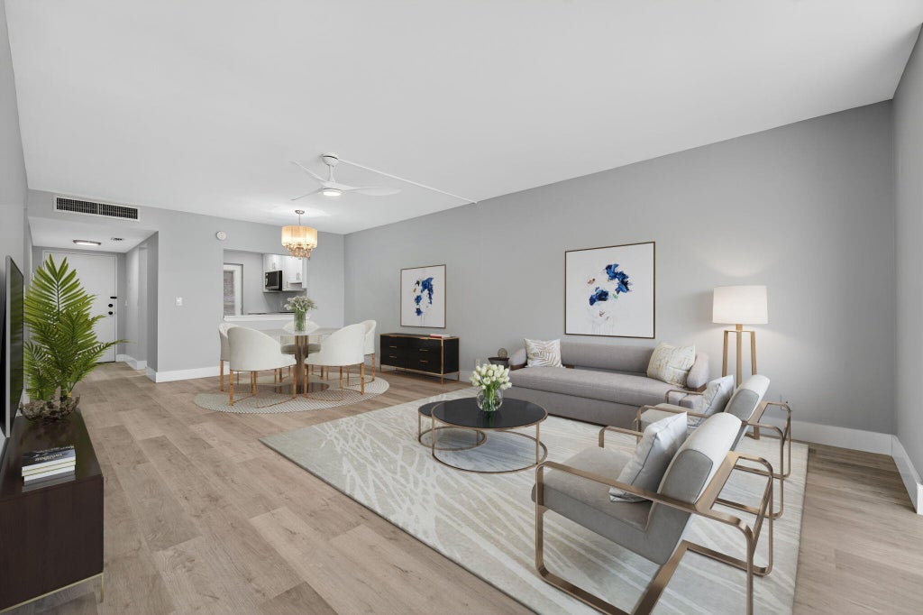 Looking for ocean breezes without ocean prices? Boca Teeca is the place to be! Bright and spacious, this move-in ready corner unit has a den that can easily be converted to 3rd bedroom. Luxury vinyl flooring, modern kitchen & bathrooms, AC 2023, impact windows, huge bedrooms, tons of closet space. No popcorn ceilings! Enjoy the peace of mind of a completely renovated building, incl. new roof & elevators - 36K assessment paid in full. HOA incl. internet, cable & water. Room for washer/dryer. Don't miss this opportunity to live by the 70+ acre green space slated to become North Park, East Boca's new premier recreational space, w/in walking distance to the upcoming $20 million Boca Paddle Club. Close to FAU, downtowns Delray & Boca, and only 1/2 mile to ocean! Some photos virtually staged.