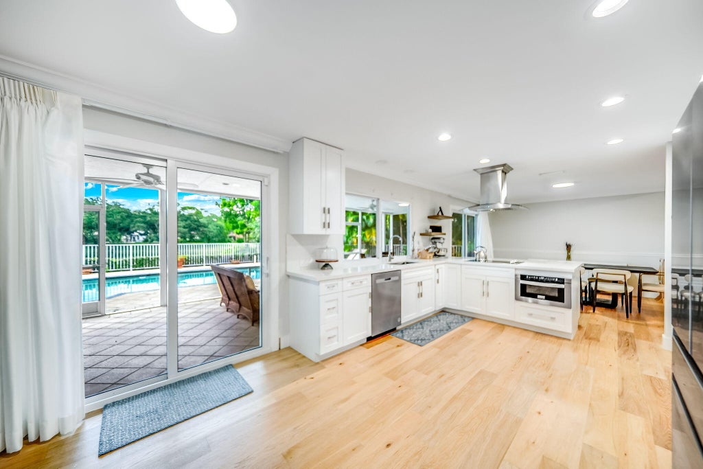 Beautifully Furnished Fully Renovated Lakefront Home - 4BR/3BA with Expansive ViewsHighly sought-after lakefront residence featuring 4 bedrooms and 3 bathrooms renovated in 2025. Bright and fully renovated throughout with new oak flooring and newly installed impact windows and doors. Enjoy expansive lake views from the family room, kitchen, primary bedroom, and all upstairs bedrooms. The primary suite includes a private terrace overlooking the lake.Additional highlights include a screened-in patio and pool deck, new kitchen with quartz countertops and stainless steel appliances, and a new roof (2017). Property also features a gas dryer and irrigation system. Located off St. Andrews Blvd, just 5 minutes from Towne Center Mall.