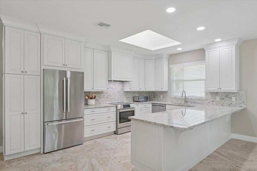 GORGEOUS MOVE-IN READY HOME WITH GOLF VIEWS! Nestled on a beautifully landscaped 1/2-acre lot overlooking the 2nd hole of the prestigious Legacy Golf Course, this meticulously updated home offers luxury, comfort, and peace of mind. Step inside to discover a bright, modern interior featuring 24x24 porcelain tile flooring throughout, a 2018 metal roof, PGT WinGuard impact windows, and a hurricane-rated garage door--every detail designed with quality and durability in mind. The chef's kitchen is a true showstopper, featuring Bosch appliances, granite countertops, custom cabinetry, with an adjacent dining area and family room, perfect for entertaining. The living room offers a more formal gathering space including bar area with wine cooler all with breathtaking views of the golf course. Three en-suite bedrooms with walk-in closets all have bathrooms that have been tastefully renovated with seamless glass showers, custom vanities, and premium finishes. The oversized laundry/hobby room provides exceptional functionality with an abundance of granite-topped storage. Additional highlights include New A/C units (2021 & 2022), Updated electrical panel, Whole-house water filtration system, 3-car garage & expansive circular driveway. Enjoy breathtaking golf course views every day from your private covered screened lanai. Your HOA fees cover access to the PGA Village Island club where you have a resort style pool, fitness center, pickleball, tennis, billiards and a host of activities and events for everyone. This is more than a home, it is a lifestyle.