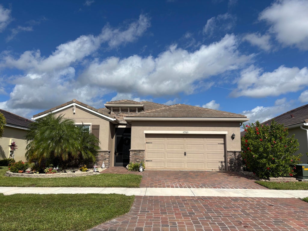 Beautifully upgraded home featuring a heated inground pool overlooking an expansive lake with gorgeous views of the sunsets, space launches, and wildlife. Interior of home features granite kitchen counters, extra cabinets, SS appliances, premium vinyl flooring in the bedrooms, tile through the main living areas, marble counters in bathrooms, ceiling fans all bdrms, crown molding living room, Hurricane rated front door (stained glass) electronic Hurricane doors in the back. New AC and water heater installed 2024. This smarthome also includes an alarm system. This perfect home affords a buyer a worry free lifestyle.